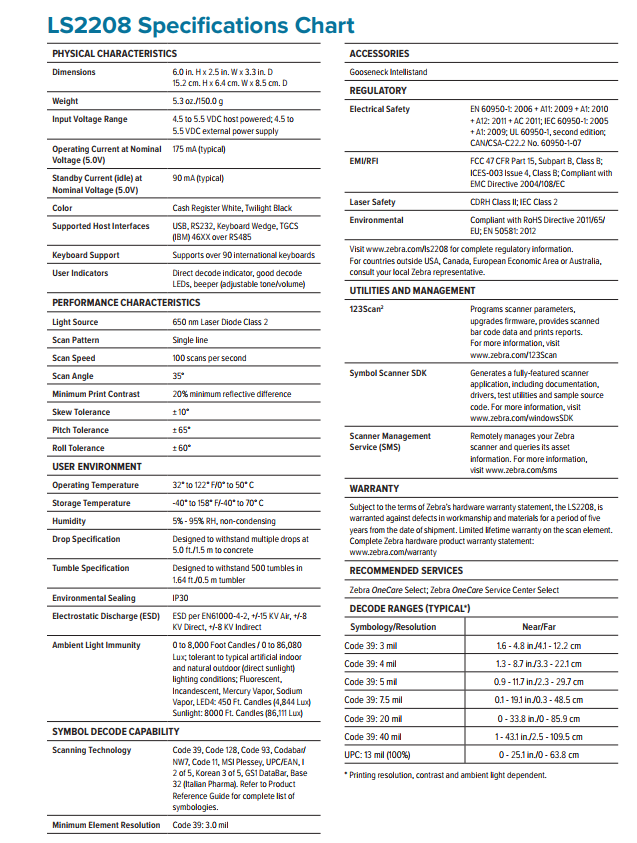 Product Model : LS 2208 Handheld Scanner